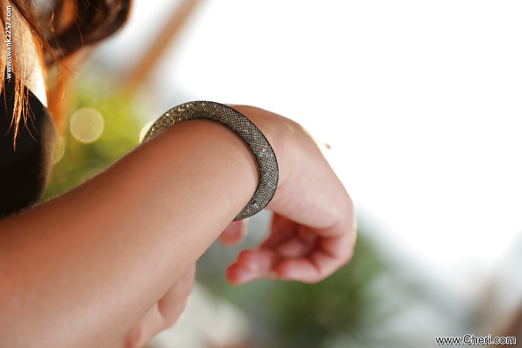 Брюнетка Бетти Ви натягивает чулки argyle на гладкие ножки