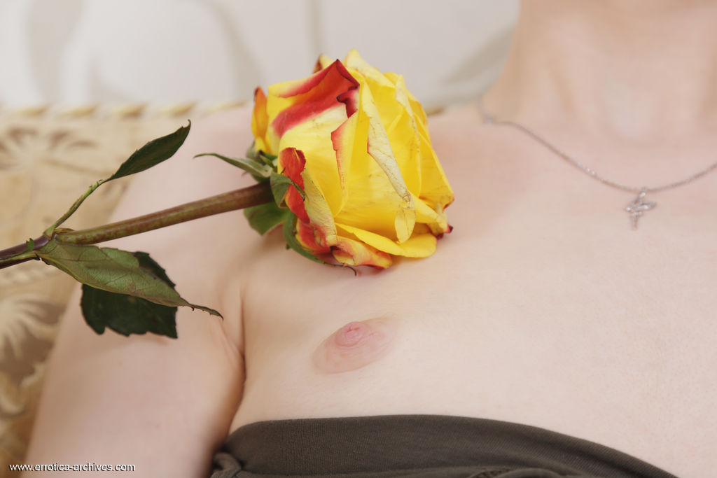 Цзя лежит голая на диване, она играет с желтой розой, скользя ею по всему телу.
