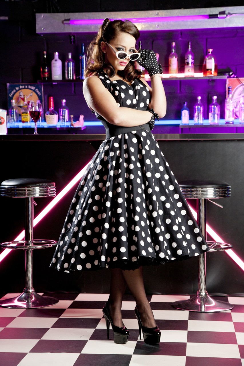 Гламурная девушка Лайза Дель Сьерра снимает платье в горошек перед межрасовым сексом