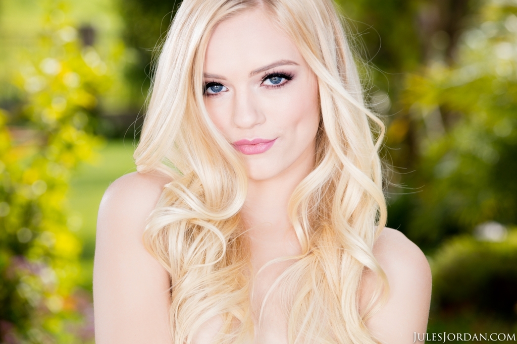 Горячая белокурая цыпочка Алекс Грей снимает свою пижаму на заднем дворе