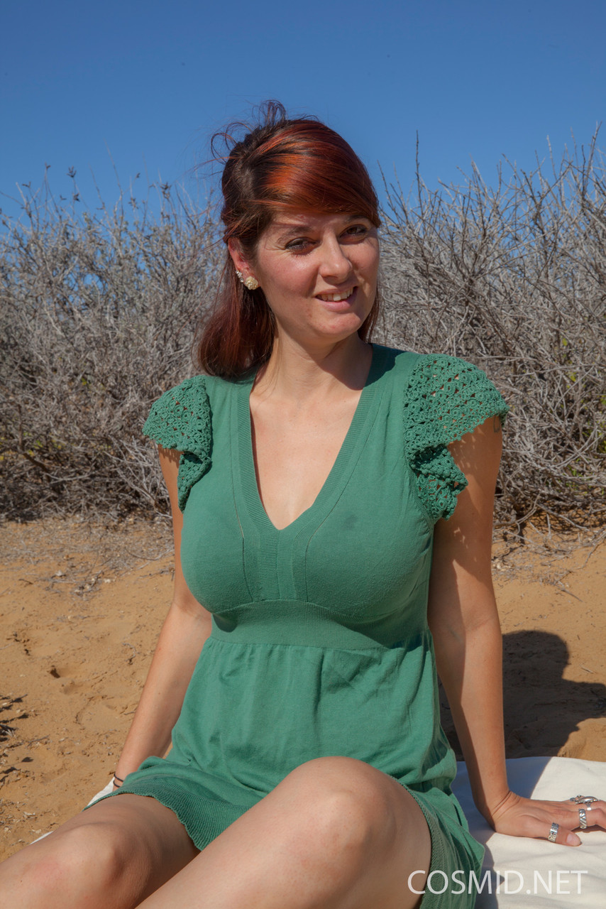 Горячая рыжеволосая любительница раздевается, чтобы выставить напоказ свою красивую попку на одеяле снаружи