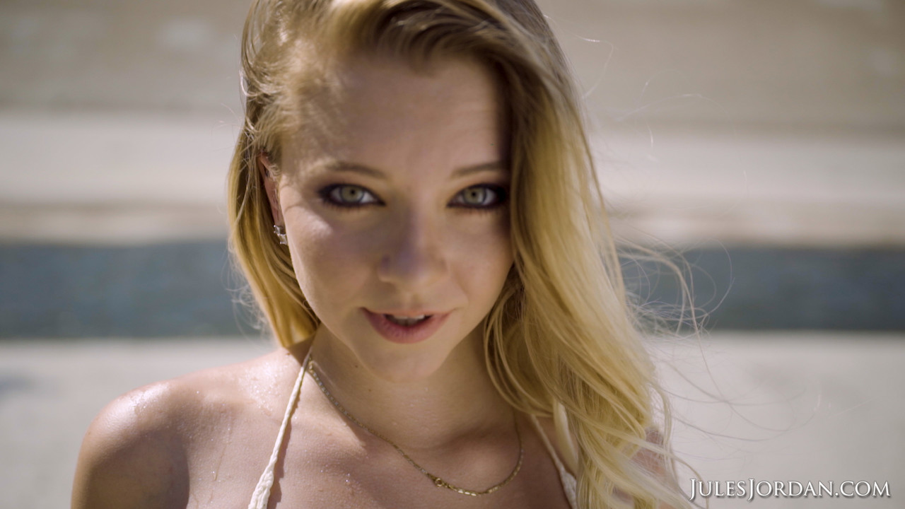 Худенькая молоденькая Райли Стар обливает себя водой перед диким межрасовым трахом