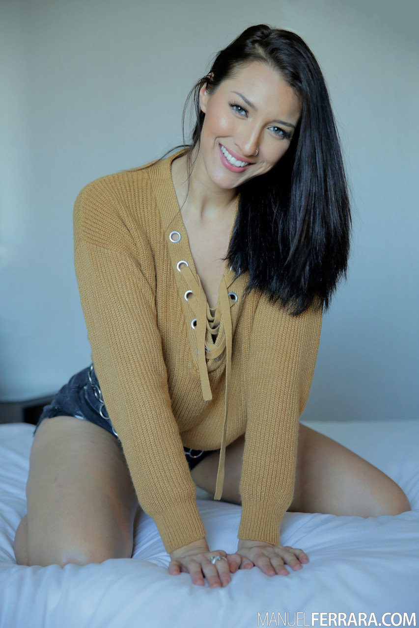 Красивая брюнетка Белла Ролланд рекламирует своего манимейкера, раздеваясь догола