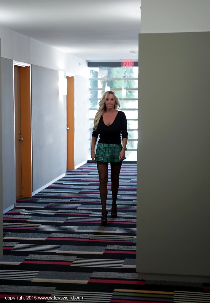 Красотка-домохозяйка Сандра Оттерсон, одетая в одежду молодой девушки