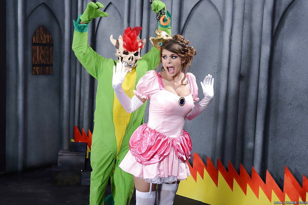 Красотка с большой грудью в белых чулочках отсасывает и трахается с двумя огромными стояками