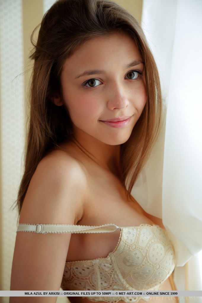 Крошечная молоденькая Мила Азул раскрывает большие натуральные сиськи, прежде чем показать свою лысую киску