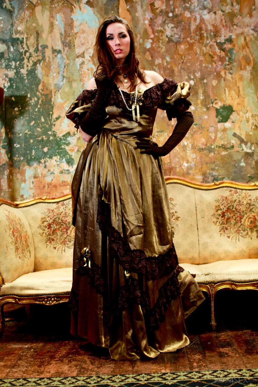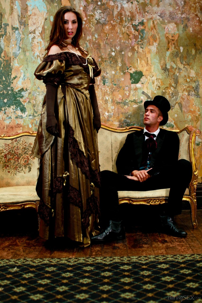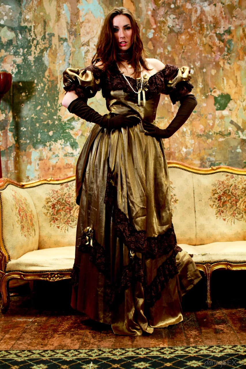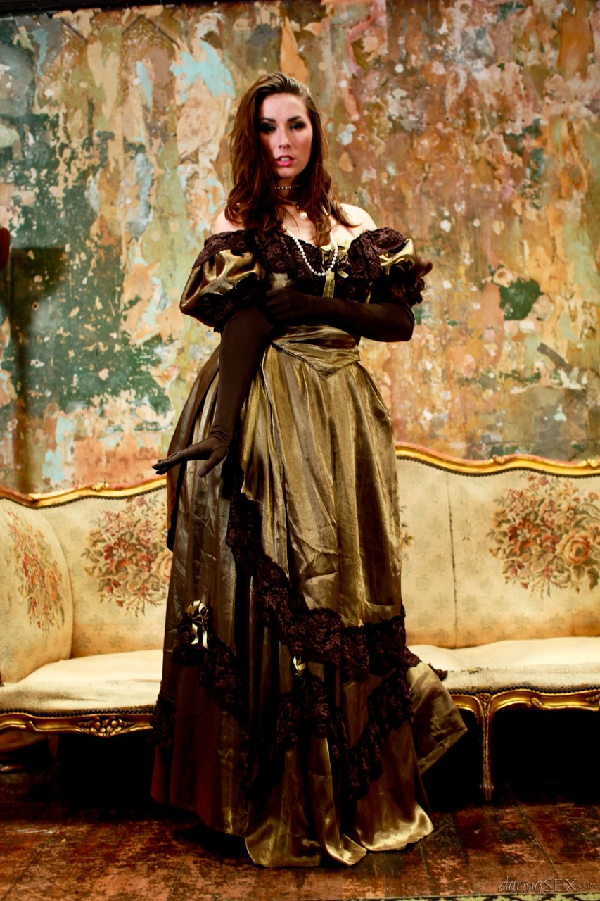 Порнозвезда Пейдж Тернах позволяет своему длинному платью задираться вверх и прикрывать голую задницу