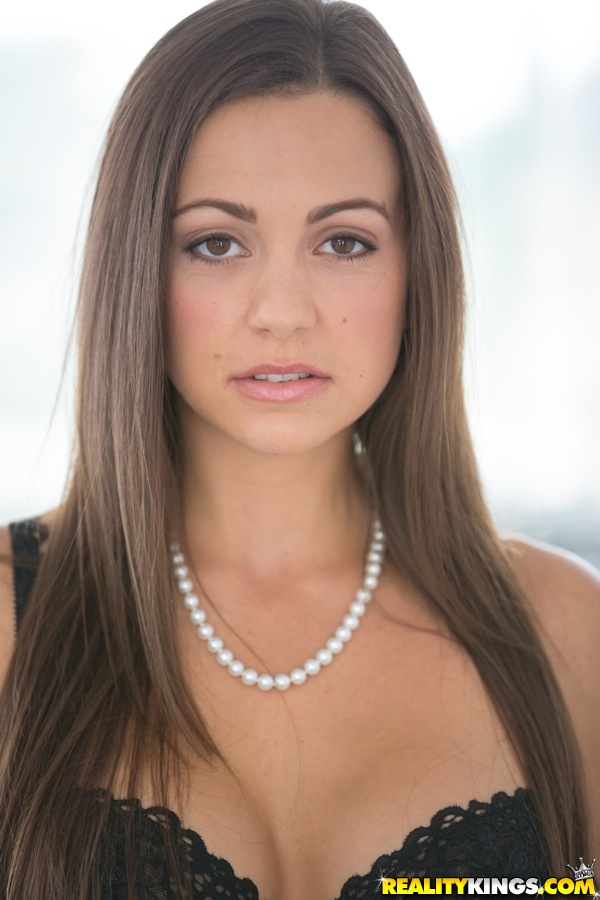 Резвящаяся брюнетка милашка в чулках избавляется от своего кружевного белья