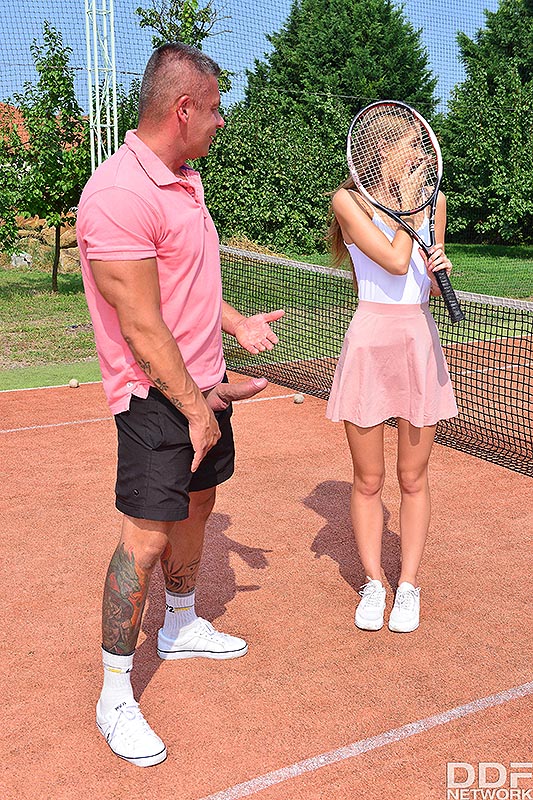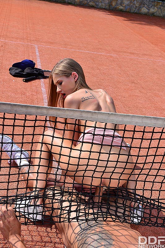Спортивная блондинка Тиффани Татум трахается на корте со своим инструктором по теннису