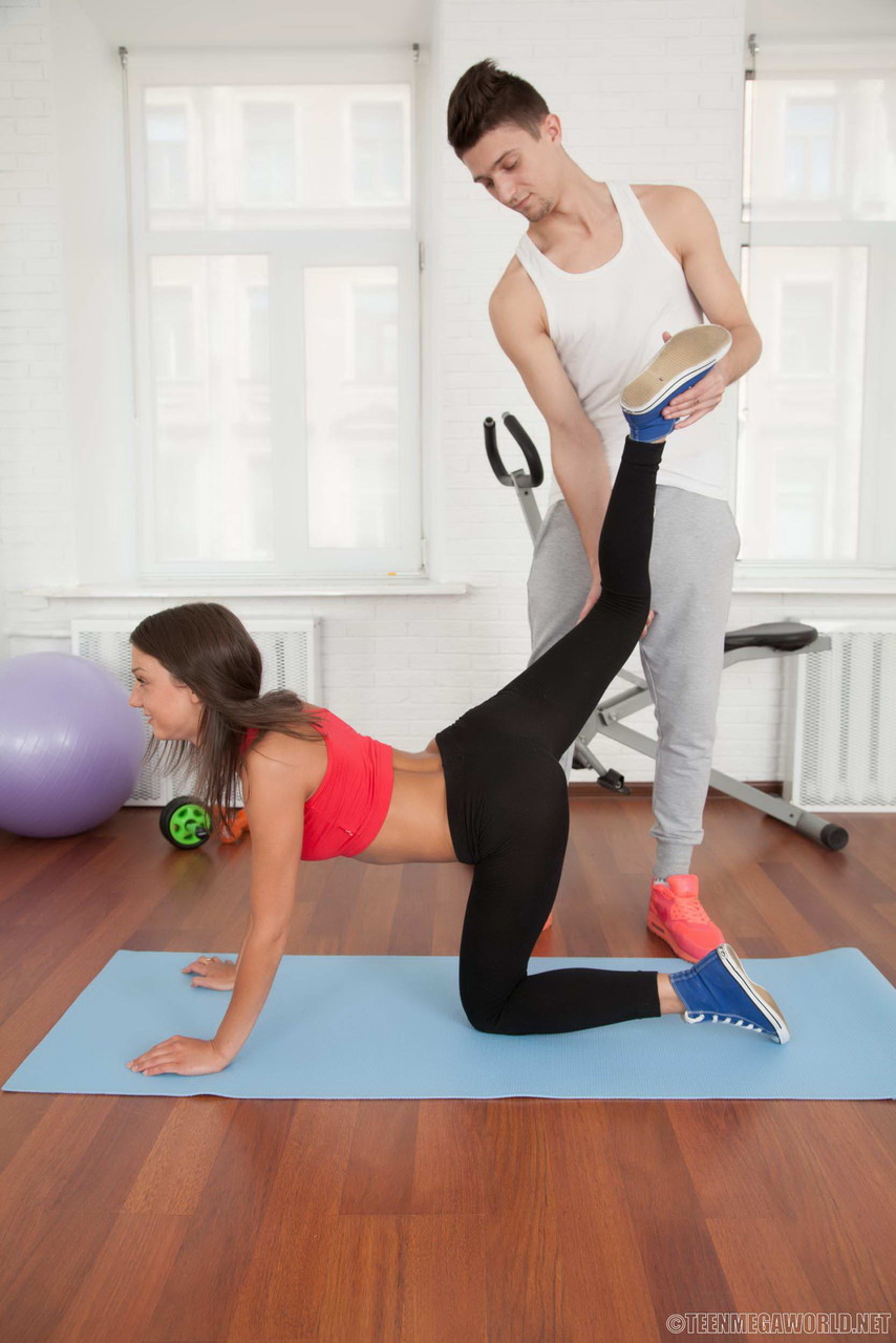 Спортивная молоденькая Энджел получает сперму на лицо после того, как трахнулась со своим личным тренером
