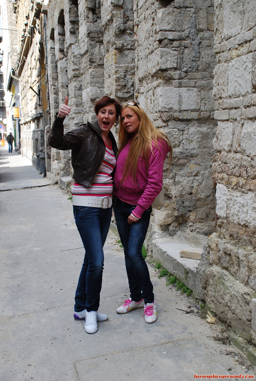 Старые и молодые лесбиянки бродят по улицам перед сексом дома в нейлоновых чулках