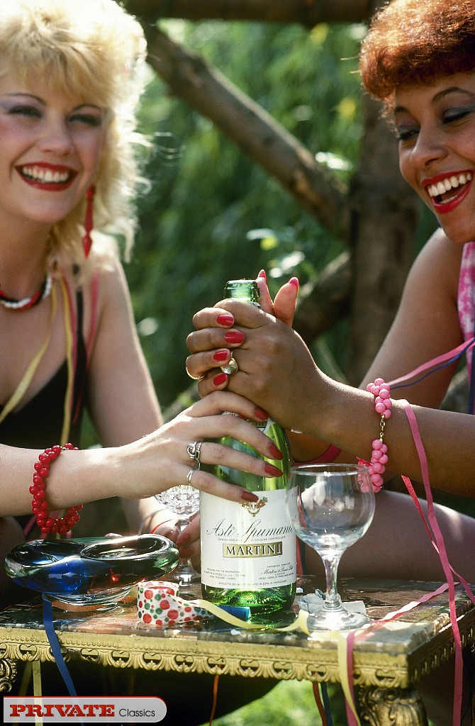Возбужденные самки с ретро-прическами трахают друг друга и парней тоже в поле